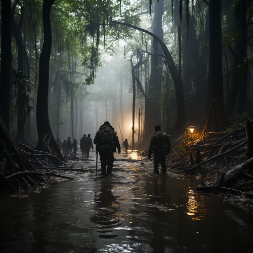 Blue heeler Austrailian cattle dog playing in a stream full of trout in the fall fishing gear in the style of a vintage magazine cover yellowstone series and outdoor life , --s 1000 --v 5.2 --c 10 --ar 1:1