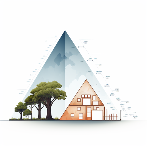 similar triangles to measure the height of a building or a tree, simple vector image. white background