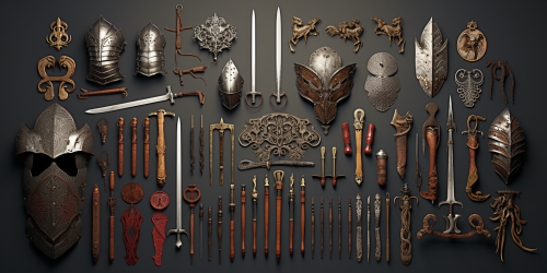 A medieval knight looking distressed in battle, clutching a small locket with a painting of a cat, dramatic lighting, realistic style --v 6.0 --ar 9:16
