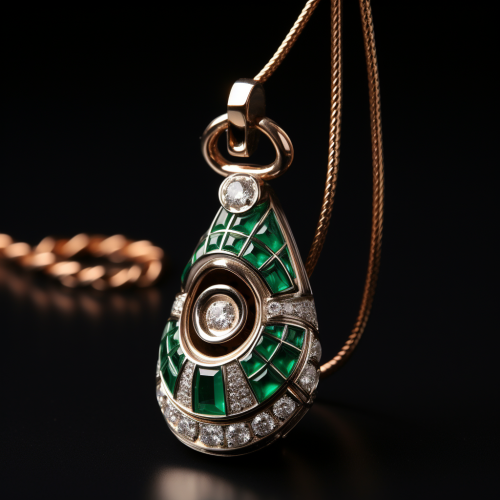 design pendant emeralds in the shape of telephone handset green color and white diamonds