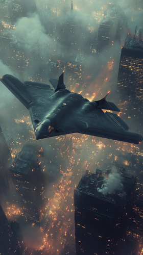 DeLorean spaceship performing an acrobatic roll above a bustling city intersection, captured from a worm’s-eye view, with light streaks from moving vehicles below, dynamic wide-angle shot, twilight hour glow highlighting the metallic surface --ar 9:16 --s 450 --v 6.1