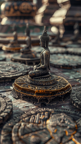 Ayutthaya Kingdom Throne Game Board, tabletop game, vignette, soft shadows, raytracing, artful bokeh depth of field, --v 6.0 --ar 9:16 --style raw