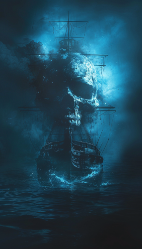 Background: A dark, stormy ocean with towering waves, where the boat is partially submerged, leaning as if it’s sinking. Make the water the focal point, with a few life vests and debris scattered in the water to suggest the chaos of a disaster. • Central Figure: Keep the back view of the person in the water but zoom out, showing their body fully submerged, with only their head above the surface. The arms can be reaching toward the horizon where the boat is sinking, conveying a sense of hopelessness. make look realistic