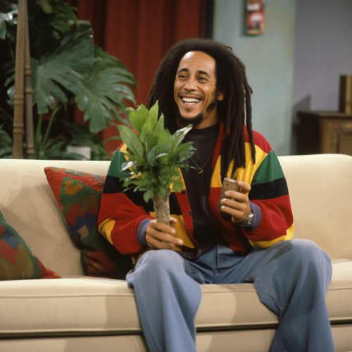 donald trump and bob marley smoking a joint laughing, using bright pencil style, high quality, super detailed, pop art