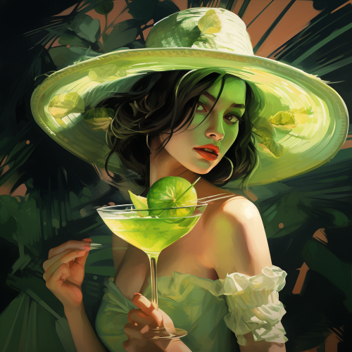 a picture in the style of chiko roko of a cocktail Paloma. This picture is for a nft project and planned a collectible in a blockchain wallet. in a color green buzzing
