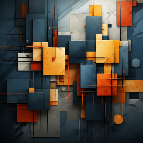 Create a geometric abstraction wall art piece for our office design room. The artwork should tell a story through its dimensions, narrative, and geometric elements. Use clean lines, shapes, and vibrant colors to convey a sense of balance and order. Consider incorporating layers and patterns to add depth and complexity to the piece. The dimensions of the artwork should complement the wall space, enhancing the overall aesthetic of the office. The geometric elements should symbolize different aspects of our company's values, history, or mission, creating a visually compelling narrative. The goal is to craft a distinctive and meaningful piece that not only complements the office design but also sparks curiosity and contemplation among viewers. --v 6.0