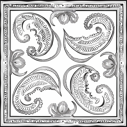 Delicate Paisley Pattern, Stylised Plant Forms, Elongated Paisley Borders, Simple Outline Paisley, Tiled Paisley Pattern, Simplistic Two Colour Paisley