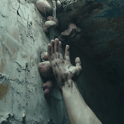 Body Hand Covered with Mushroom Cocoon