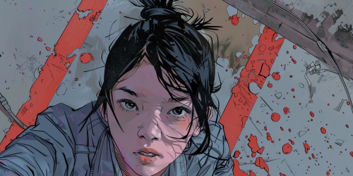 A gray and navy comic page, be connected cut scene, militaristic realism, normal citizen realism, graphic novel, narrative, community, korean punk, korean girl, etam cru, gray and crimson, tightly cropped composition, masterpiece novel, high detail --ar 2:1
