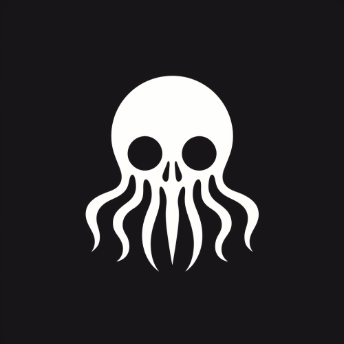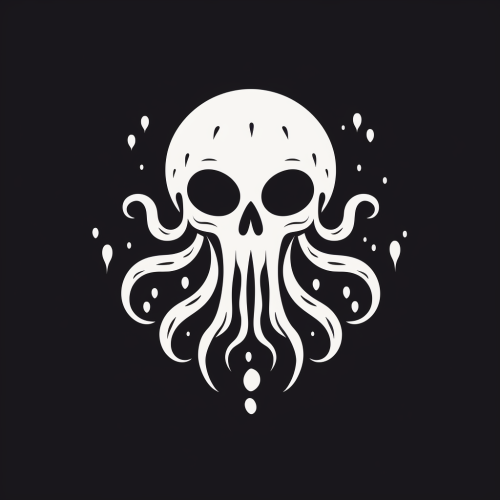 ghost, lovecraftian, cute, skull, white, logo, illustration, creepy, Very simple, strong outline, bold, black and white, high res, svg vector, flat with no background and no shadows