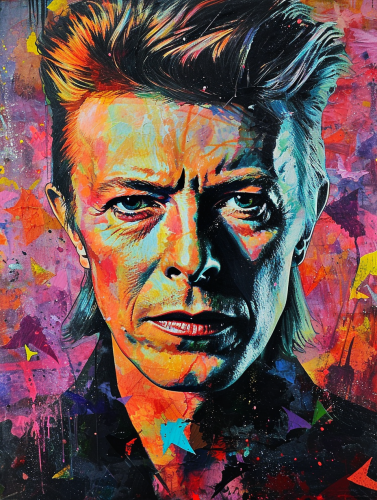 a cool poster of david bowie holding a bottle of maggi in his hands
