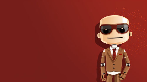 What: Confused AI robot. Background: minimal. Type: Photography. Perspective: eye-level. Style: Business professional. Genre: Empowerment. Purpose: For Power Point presentation. Colors that must be included: dark red, beige, white, black. Amount of minimalism: high. Feelings to evoke: kindness, Good, safety, freedom, optimistic, upbeat, personal, reassuring, motivating, professional, empathetic, understanding, inviting. Industry: financial. Constrasts and tones: High contrast, Warm temperature. Technical details: Photorealism, ultra realistic, photography, Color correction, Ultra-wide angle, Depth of field, Ultra-detailed, Beautiful Color coding, Crazy details, Complex details, Unreal Engine, Super Resolution, Megapixel, Pro Photo GB, VR, Natural lighting, Cinematic lighting, Backlighting, Octane rendering, High detail, Accent lighting, Full color, HDR, Anti-aliasing, FKAA, TXAA, RTX, SSAO, Shaders, OpenGL , GLSL Shaders, Post-processing, Post-production, Cell Shading, Tone mapping, CGI, VFX, SFX. Aspect ratio: --ar 16:9