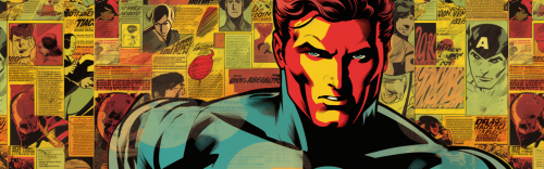 a background of classic comic books with halftone patterns and retro heroes, illustrated and looks antiquated --ar 32:10