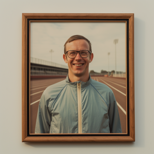 The photograph shows brightly coloured candies placed on stripes of tracks reminiscent of running tracks at a sports stadium. The main background colour is rich and bright, while the tracks, made in the form of white lines with numbers, add graphic quality. The style of the photograph is minimalist and playful, with an emphasis on bright contrasting colours and clear geometry. The light falls at an angle, creating soft shadows from the figures, which adds volume to the photograph. The image as a whole resembles a scene of a sports competition, stylised in an abstract form, possibly with elements of pop art. The image was taken with a professional camera