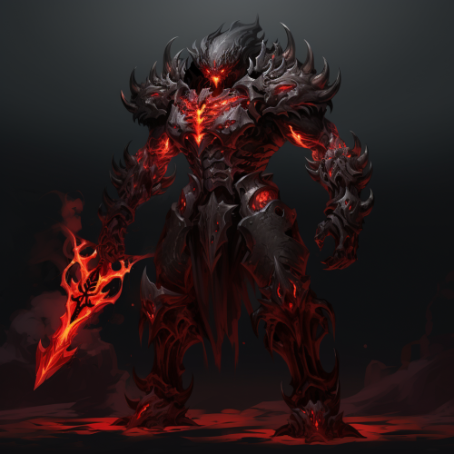 a boss character for a game. Appearance: A towering and muscular figure with fiery red eyes, adorned in battle-worn armor. Abilities: Controls destructive forces of anger and rage, summoning devastating attacks and manipulating emotions to fuel his power. Personality: Quick-tempered, vengeful, and consumed by a desire for revenge. Enjoys inflicting pain and chaos.