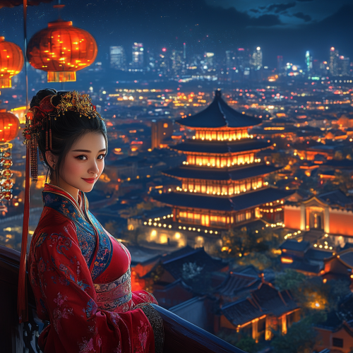 What Beijing looks like, fascinating, 2024s, imaginative, realistic, photographic of the city of Beijing, background Beijing city view, incredible, creative, city lights 3d render, beautiful happy chinese women