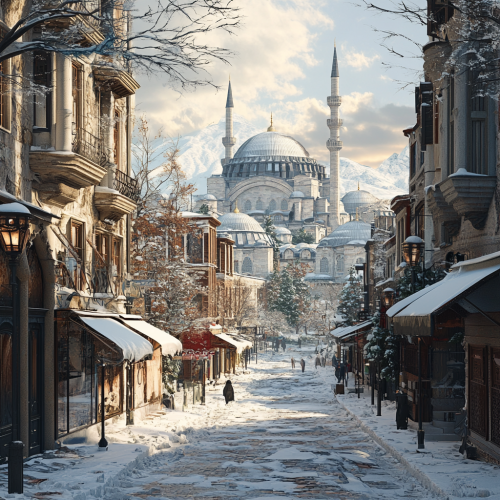 What Istanbul looks like, fascinating, 2024s, imaginative, realistic, photographic of the city of Istanbul, background Istanbul city view, incredible, creative, old street 3d render, winter