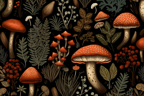 different varieties of forest mushrooms pattern on white background, watercolor --s 250 --v 6.0 --tile