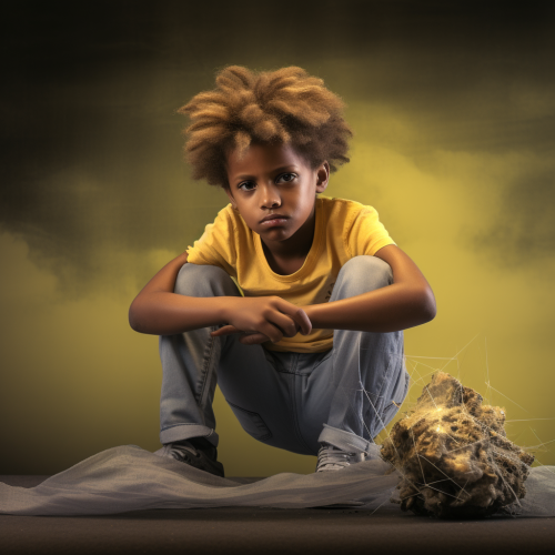 Close-up illustration of an 8-year-old Black child sits at a small wooden desk in a cozy, warmly lit attic, surrounded by treasured family items--a vintage photo album, a worn suitcase, an old globe, and a stack of well-loved books--that hint at a rich history. He is facing the camera. The child’s face is focused and content as they write in a notebook, capturing their story with purpose and pride. Behind them, faint, ethereal images of ancestors and places from the past appear in the warm light, almost like memories or stories coming alive in the room. The walls are adorned with maps, drawings, and small artifacts that add layers of personal history. Illustrated in the bold, vibrant, and whimsical style of Mary Blair:: 2 with strong shapes and earthy colors, the scene evokes warmth, nostalgia, and the powerful act of connecting with one’s story --s 250