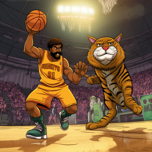 portrait basketball player slam dunking a basketball, playing basketball nba court --ar 3:4 --s 300 --style raw