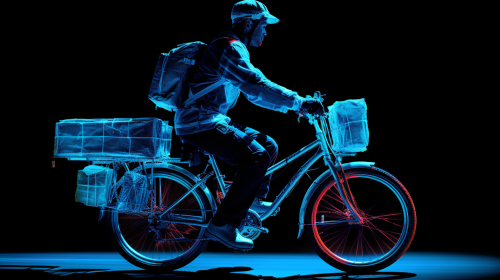 delivery boy on bike, sideview, <thermal camera> style, --ar 16:9