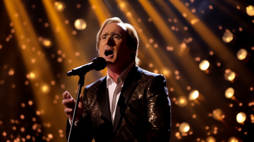 Brad Bird singing on America’s Got Talent, real television photograph --ar 16:9