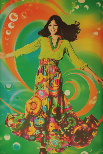commercial poster from the 70s, advertisement for a washing machine detergent brand, sabatier effect, psychedelic colors --ar 2:3 --v 6.0