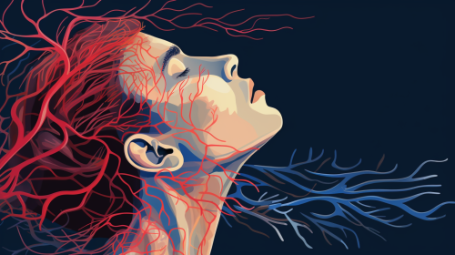 person breathing and showing the connection of their nerves throughout their brain to the act of breathing drawn in a cutout style with cell shading --ar 16:9
