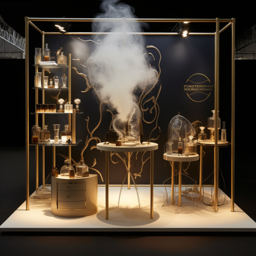 booth for new collaction berfume with light and coze style worm light and logo in the table