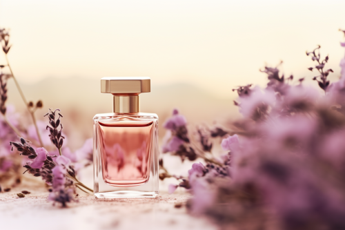 aesthetic, minimalist, feminine, elegant perfume brand close-up photo, dusty, neutral colors, depth of field --ar 3:2