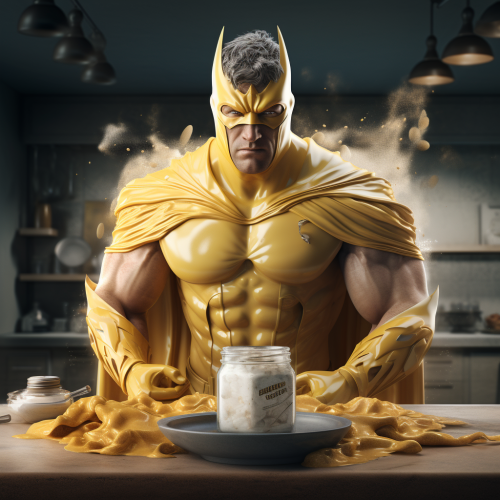 a superhero whose superpower is related to butter. Hyperealistic, 8k