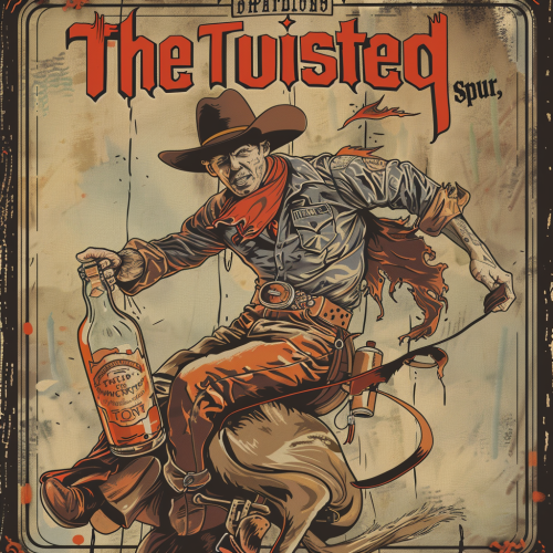 a promotional flyer for a liqour store called "The Twisted Spur," Cowboy themed, western-rodeo inspired.