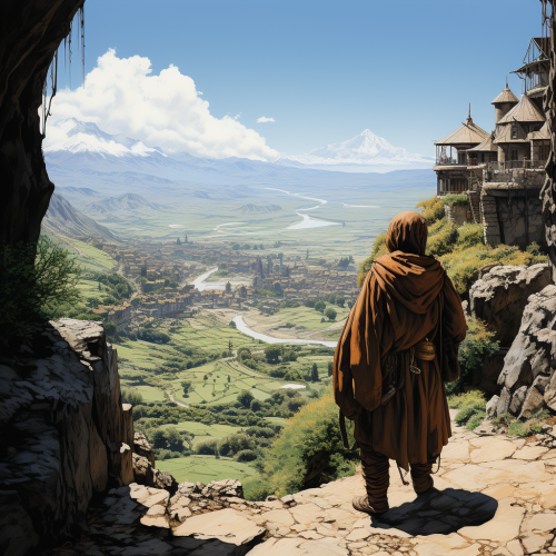 an aerial view of a villager from the Andes from the Inkal comic book by Moebius --s 750