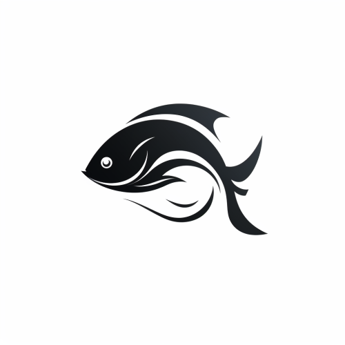 black logo, white background, combination of a fish with details and aquatic plans, aquarium style