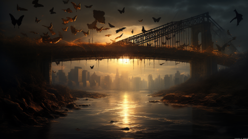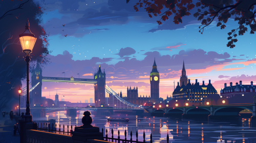 london city landscape, bridge road side view, illustration --ar 16:9 --s 250 --v 6.0