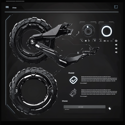 aLDC screen showing parts of futuristic bike transformer including left tire, right tire, axle, front break, back break. Each part includes an icon of itself and a percentage progress bar under it, a button with word change on the right of the gauge. These parts are aligned.