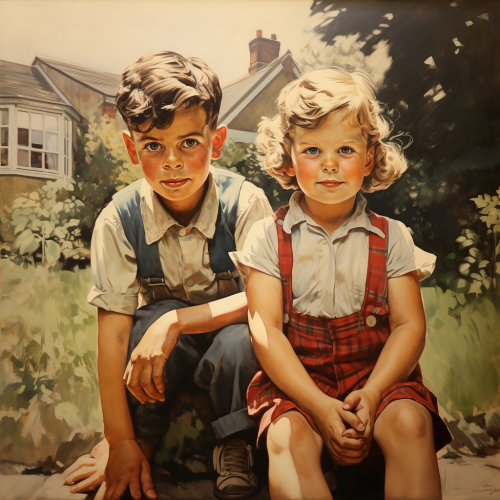 t-pose of a muddy 1940’s British farm girl aged 11, dark hair, serious expression, symmetrical, full body, spread arms, grey background, historic WWII movie character, front view --ar 16:9 --style raw --v 5.2