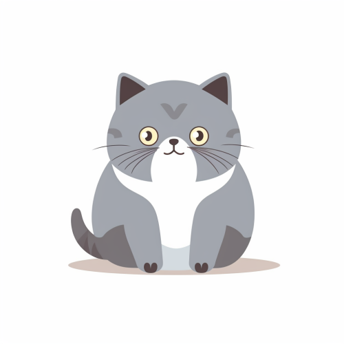 kawaii grumpy British Shorthair cat icon, Flat style, Cartoon, Vector illustration, Silhouette, white background