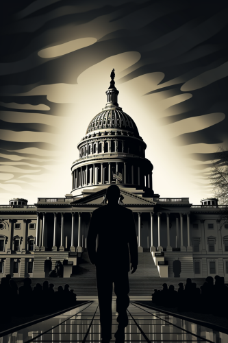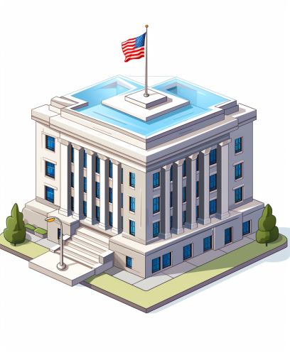 colorful book; grey color government building with us flag at the top; white background, 2D, flat design, cartoon style, low detail, no shading --ar 9:11