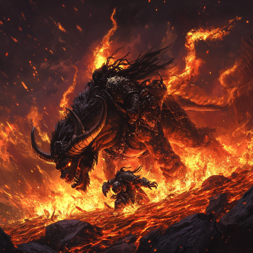 fiery female dracthyr from world of warcraft dropping a bashful male tauren named Logic, into a pool of lava, she is delighted, he is terrified. deep colors, high resolution