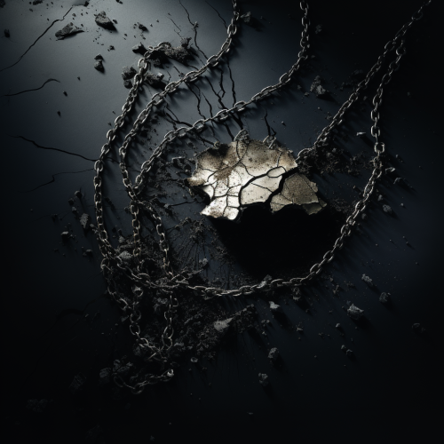 Create an image depicting a broken silver necklace laid out on a dark surface, capturing the moment of damage.