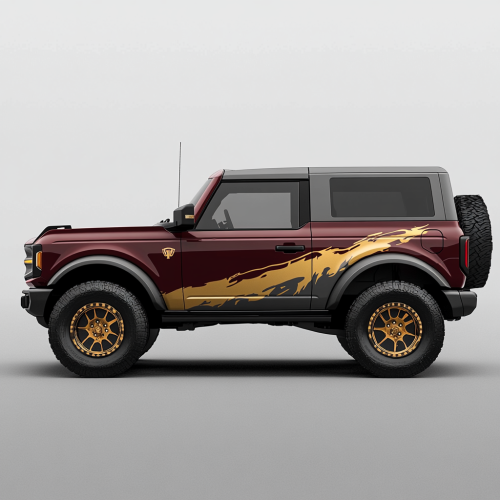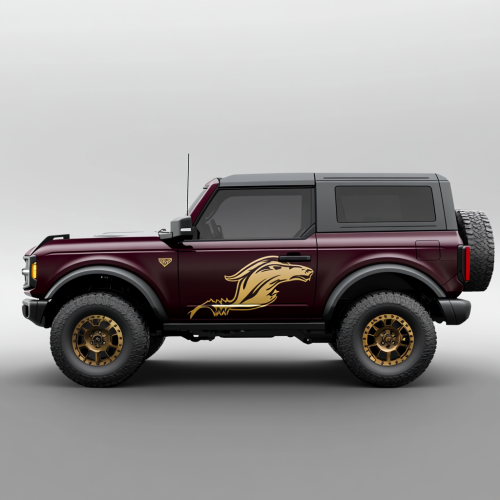 a design idea to put on the side of a grey 2022 Ford bronco in the colors, garnet and gold. Trying to convey a love of the Florida Seminoles, but don’t want to be look like Fl St. anodized dark red graphic