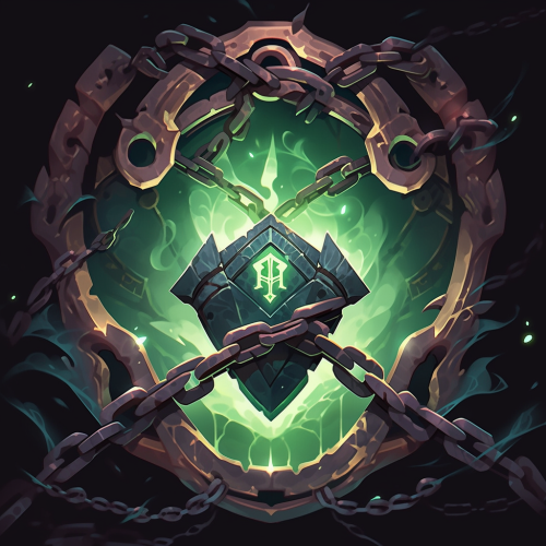 a game icon,a dark fantasy medival kingdom themed chain link ,a huge chain link,a straight chain link,dark color scheme,by Tooth Wu,hearthstone illustration,card game illustration,300 dpi, --niji 5