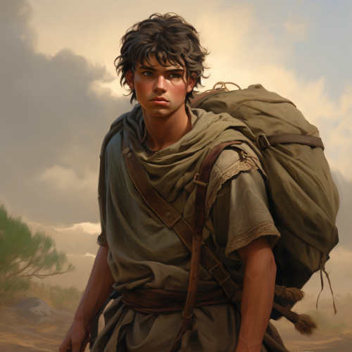 Bronze Age group of people being welcomed by a village. Comicbook style art --ar 11:16