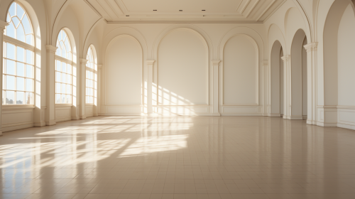 A minimalist photography of an empty white room, shadows, in the style of franck bohbot studio --ar 16:9 --s 750