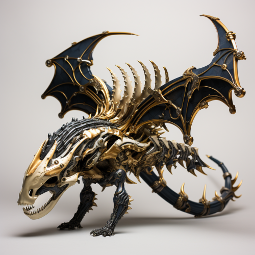 killer whale dragon, wings spread, armor with skull details, fierce, Kris Kuksi sculpture, 3D