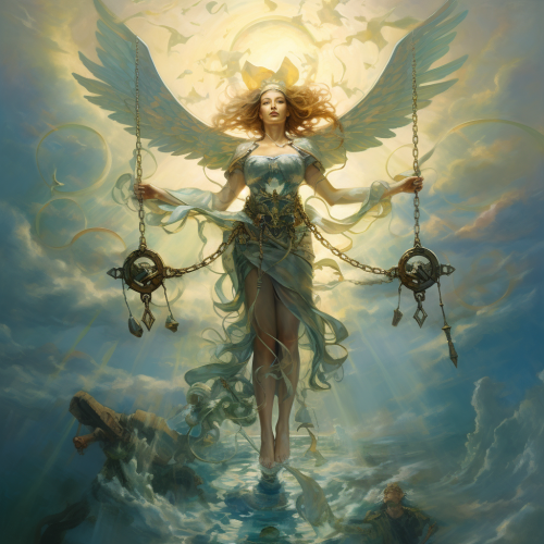 hell on the left with grim reaper, skeletons and fire, and in the middle an infinity figure 8 loop, on the right heaven with angels, light, love, eternal life. 4k, hyper realistic.