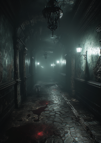 Upon approval, progress. Horror Light and enlightenment image horrific Game storytelling, horror style, and a First-person view --v 6.0 --c 15 --ar 5:7 --s 750