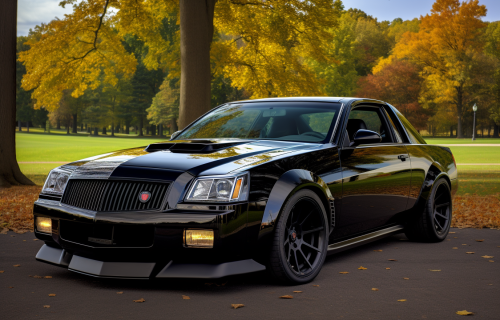 2024 buick grand national menacing boxy concept muscle car coupe, painted black, black and 18 inch chrome rims, parked along road at valley forge park 8k, hdr, --ar 14:9 --s 50