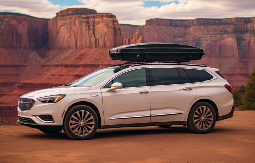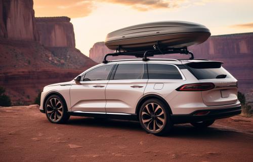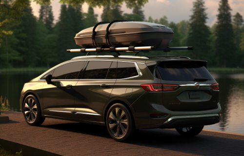 2023 buick roadmaster boxy family station wagon, parked at theme park, parking lot, luggage mounted to roof rack , 8k, --ar 14:9 --s 50